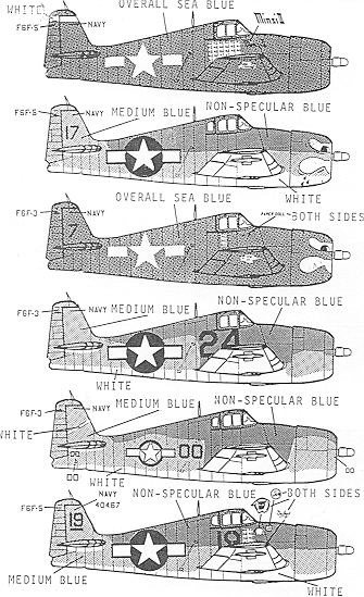 I can tell you that #00 is Flatley, Minsi III is Mc Cambell, and I believe that #19 is Vraciu. I'm also a bit confused as to versions shown. They have a overall gloss blue Hellcat with no small aft window listed as a -3 and some tri-color planes with small aft windows listed as -5 versions. I'd do some additional checking before I'd totally believe what Superscale has suggested for these planes. They could be totally correct, but I'm doubting it.