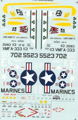 Finally, an F-4J from VMFA-333 aboard the USS Nimitz. The recommended kit is the Airfix F-4J, so that tells you how old this sheet is. Since then, there have been F-4Js from Monogram, ESCI, Italeri, Fujimi and Hasegawa, all better than the Airfix version by far.