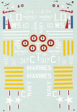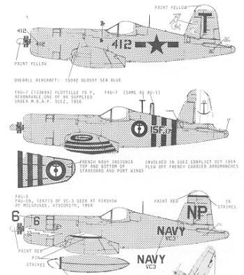 The Suez Striped F4U-7 is from the French Flotille 15F in 1956. The yellow stripes are provided on the sheet.