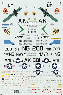 Next is a VA-113 A-4F from the USS Enterprise. There is another set of ship name decals in the packet as they misspelled it on the main sheet! I should mention that the drawing shows an A-4L so is not correct.