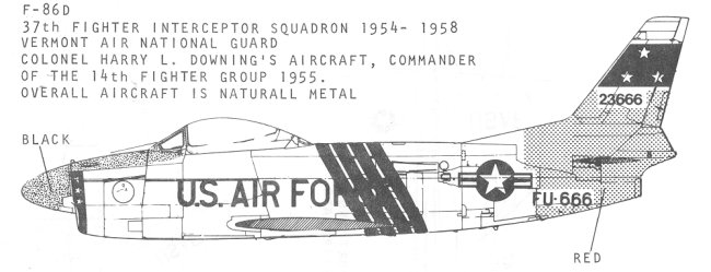 Starting numerically, the 37th FIS F-86D; which, based in Vermont, is respondent in Arctic red tail and wing markings. Though the sheet says it is an ANG unit, it is not. All ANG units are in the 100-low 200 number range. The 37th has long been disbanded.
