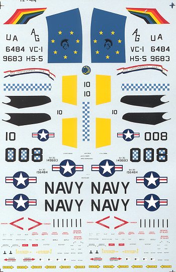 This particular sheet offers two very colorful aircraft. Like their fixed wing companions, Navy helos originally had some very flamboyant paint jobs on them. Unfortunately, those nice schemes disappeared in the rush to greys. One can only hope that some time they will return.