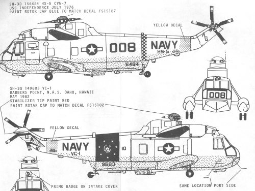 While probably designed for the Airfix SH-3D, you can use the very nice Fujimi SH-3H kit for either one of these. Just make sure that the D version has the shorter unbraced horizontal stabilizer. The H and G version had the larger, braced one.