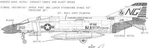 First up is the F-4B from VF-92, a squadron that was disestablished after the Vietnam War. This one is a CAG bird with the full color stripes.