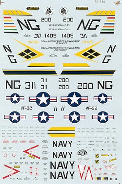 This sheet has markings for two light gull grey over white planes; an A-7E and F-4B Phantom. For kits, most will choose the Fujimi version, though the old ESCI kit is still nice and has recently been reissued in an Italeri box. The Hasegawa F-4B is the choice of most, though again, Fujimi has done a rather nice one, assuming one can find it!