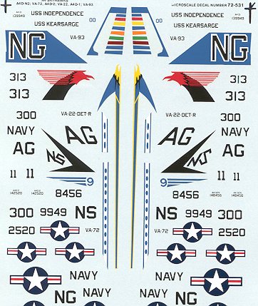 Next is a VA-72 A4D-2N (A-4C) off the USS Independence in 1963. This is a CAG bird with the multi-colored tail markings. It also has a blue and yellow stylized bird marking on the fuselage.