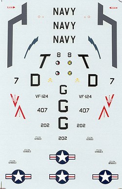 Finally, from VF-124 and airplane with a black fin tip. These markings are similar to ones supplied in the kit.