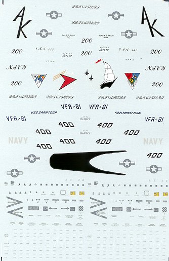The other Hornet is an F-18C form VFA-81. This one also has the unit marking on the outside of one fin and the CAG badge on the other. There is no CAG code letters for this one for some strange reason.