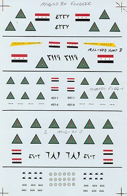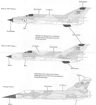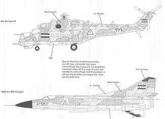 The sheet includes two MiG-21 MFs, a single MiG-23BN, a single Mi-24 Hind and a pair of Mirage F.1 EQs.