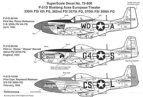 Finally there is 'Daddy's Girl' from the 370 FS/359 FG and piloted by Ray Wetmore. It has a green nose and medium blue rudder to make for a colorful plane.