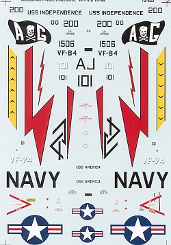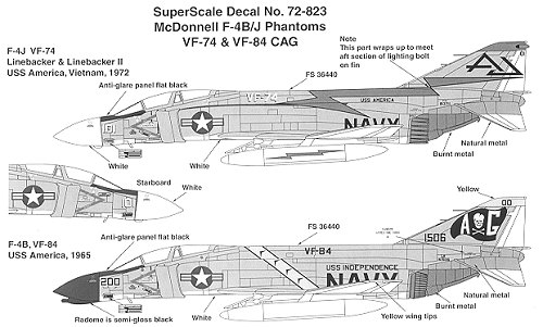 A bit less colorful is the F-4B from VF-84. The Jolly Rogers emblem has been a very popular scheme with modelers. As with the previous scheme tail and/or wing tips will have to be painted to match the decal colors.