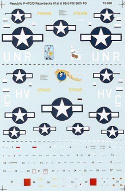 The other is from the 63 FS, also with a red cowl. 'Ol Steel Butt' uses a 12'2" Curtiss-Electric prop. It also has lower Invasion Stripes and a lighter OD over where they were on the top of the fuselage.