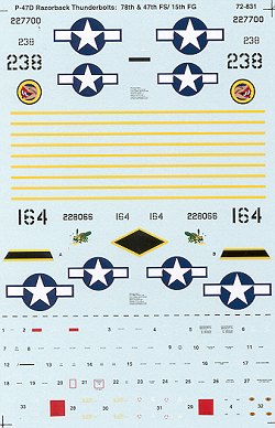The other is a 47 FS 'The Turnip Termites' plane it also has black and yellow markings but these bits are in the form of bands. The sheet provides the yellow outlines, but you'll have to paint the black parts.