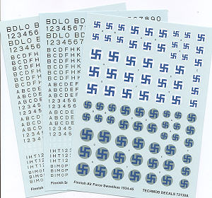 1/72 scale Finnish AF insignia and serials sheet covers the time period of 1934