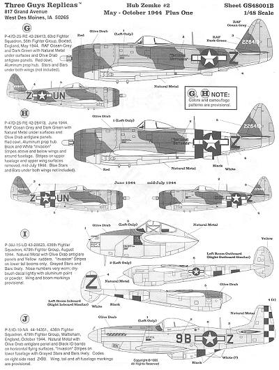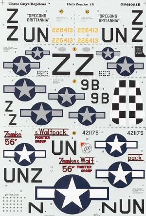 This is TGR's first Aces sheet and covers all of the aircraft flown by Hub Zemke once he started his association with the P-47 Thunderbolt. For the sake of not overloading the page with profiles, a few of them are not shown.