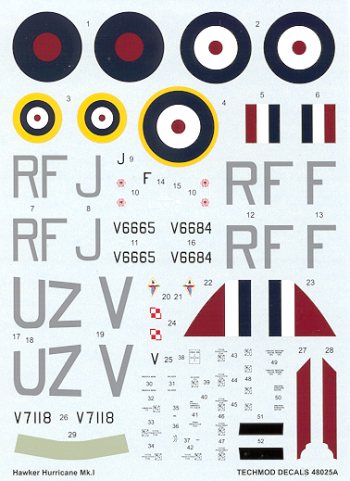 I have used Techmod decals before and can vouch for their quality and thinness. This would be an excellent sheet for your next BoB Hurrican project. They are perfect for either the Hasegawa or Airfix kits in 1/48.