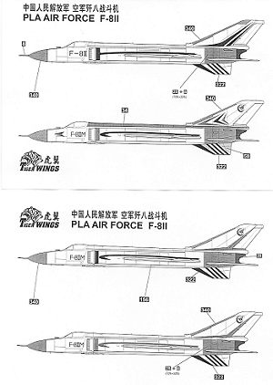 There is one scheme for the F-8II demonstrator and three schemes for the F-8IIM demonstrator aircraft. The F-8IIM is the export version of the F-8II and both of them are externally the same. As you can see from the sheets to the left, the demonstrator aircraft are quite colorful. Not shown are the diagrams for wing colors and the scheme for operational aircraft.