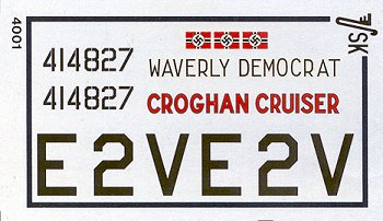 The aircraft depicted is the plane of Bob Farney of the 375th FS/361st FG in the Spring of 1945. The aircraft carries the pilots three kills on the port side along with the name 'Croghan Cruiser'. On the starboard side of the nose is 'Waverly Democrat'. The aircraft is in bare metal with black ID stripes on the wings and tail planes. The nose is yellow and dark blue is used on the canopy frame, wing tips, rudder and around the guns. There is a short section of OD anti-glare panel as well. This should make for a colorful aircraft and it will be one that you don't see on the contest tables every day.