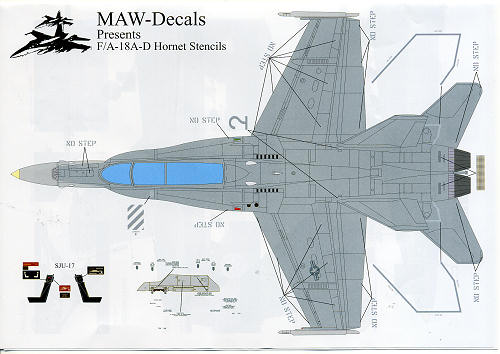has produced an excellent sheet of stencils for the 1/48 F-18A-D Hornet. There