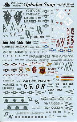 implies, this sheet is a mixture of Marine Hornets from early A models to the D