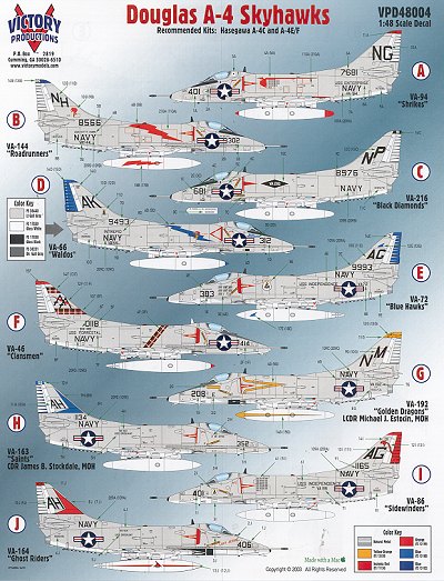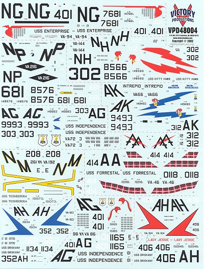 As with the other Victory Productions sheet, this one has a superb markings placement guide as well as an excellent historical section on each aircraft on the sheet. No fancy CAG birds, but all aircraft with an interesting historical background. If you like the Skyhawk, then this is the decal sheet that you should have in your collection.