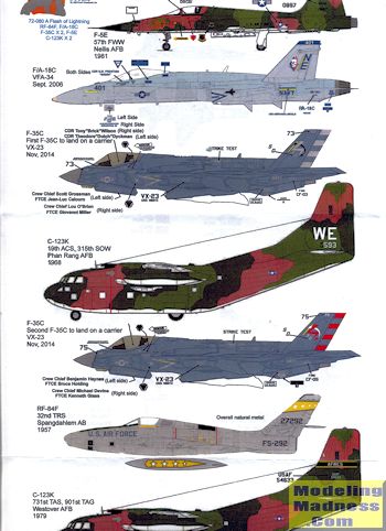 There are two F-35Cs on this sheet, both from VX-23, part of the Strike Directorate at Pax River. These planes are assigned to test out carrier suitability so we have both the first and second F-35C to land on a carrier with the second plane having a bit more color than the first.