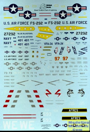 The instruction sheet for this set is the best in the business when it comes to background information and what may be needed to accurately depict the aircraft being modeled. In addition to the actual placement profiles, there are several additional pages of information that include a history of the type, kits and update bits for these schemes, as well as load-out information, and any changes needed to properly model the aircraft in question, assuring you of the most accurate model you can have. A listing of kits and conversion sets is also included. A visit to their web site will get you much larger images of the markings options. As with the previous sheets, these are superbly printed by Fantasy Printshop and without any registration problems. If you have not yet treated yourself to some of the best researched decals around, you should.