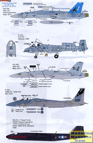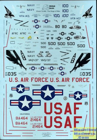 The instruction sheet for this set is the best in the business when it comes to background information and what may be needed to accurately depict the aircraft being modeled. In addition to the actual placement profiles, there are several additional pages of information that include a history of the type, kits and update bits for these schemes, as well as load-out information, and any changes needed to properly model the aircraft in question, assuring you of the most accurate model you can have. A listing of kits and conversion sets is also included. A visit to their web site will get you much larger images of the markings options. As with the previous sheets, these are superbly printed by Fantasy Printshop and without any registration problems. If you have not yet treated yourself to some of the best researched decals around, you should.