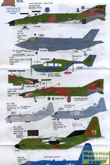 The instruction sheet for this set is the best in the business when it comes to background information and what may be needed to accurately depict the aircraft being modeled. In addition to the actual placement profiles, there are several additional pages of information that include a history of the type, kits and update bits for these schemes, as well as load-out information, and any changes needed to properly model the aircraft in question, assuring you of the most accurate model you can have. A listing of kits and conversion sets is also included. A visit to their web site will get you much larger images of the markings options. As with the previous sheets, these are superbly printed by Fantasy Printshop and without any registration problems. If you have not yet treated yourself to some of the best researched decals around, you should.