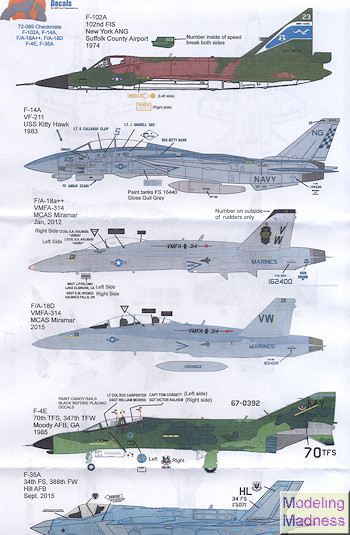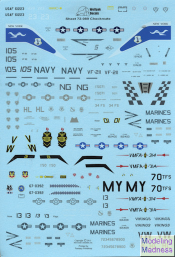 new Wolfpak Decals sheet we have another half dozen jets and a goodly variety as