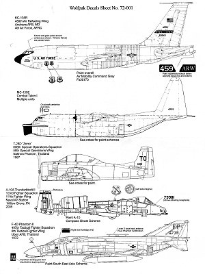 There are several additional pages to the instructions that show camouflage schemes from either the USAF Tech Order or hand drawn. Some of the aircraft have photos as well. There is also a short writeup on each aircraft pointing out the way they are outfitted. A list of kits and aftermarket bits is also included, something needed when one needs conversion bits as with the MC-130.