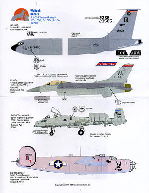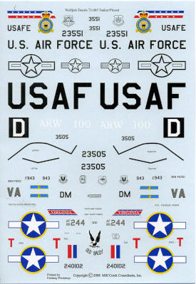 First up is a KC-135R from the 100 ARW, based at Mildenhall, England. These planes are in overall AMC grey and sport the old WWII unit's tail code on the fin. Two different serial options are provided in case you wish to do the version with the wing tip refueling pods.