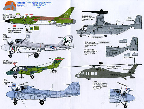 There are kits for all of these planes, though you may need to do some modifications to match those that are depicted on the sheet. Typical of Wolfpack Decals, the instructions are superlative, providing a history of the planes in question as well as loadout information and any updates or modifications required