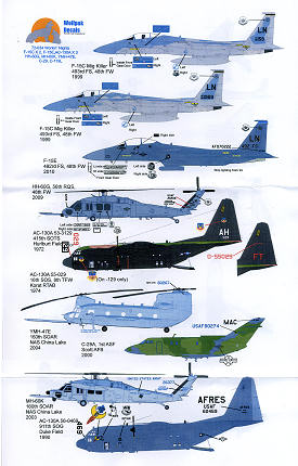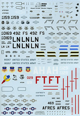 The instruction sheet for this set is the best in the business when it comes to background information and what may be needed to accurately depict the aircraft being modeled. In addition to the actual placement profiles, there are several additional pages of information that include a history of the type, kits and update bits for these schemes, as well as load-out information, and any changes needed to properly model the aircraft in question, assuring you of the most accurate model you can have. A listing of available kits is also included.
