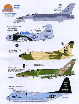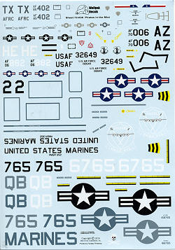 The instruction sheet for this set is the best in the business when it comes to background information and what may be needed to accurately depict the aircraft being modeled. In addition to the actual placement profiles, there are several additional pages of information that include a history of the type, kits and update bits for these schemes, as well as load-out information, and any changes needed to properly model the aircraft in question, assuring you of the most accurate model you can have. A listing of available kits is also included.