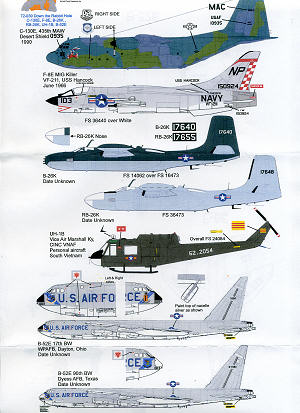 The instruction sheet for this set is the best in the business when it comes to background information and what may be needed to accurately depict the aircraft being modeled. In addition to the actual placement profiles, there are several additional pages of information that include a history of the type, kits and update bits for these schemes, as well as load-out information, and any changes needed to properly model the aircraft in question, assuring you of the most accurate model you can have. A listing of available kits is also included.