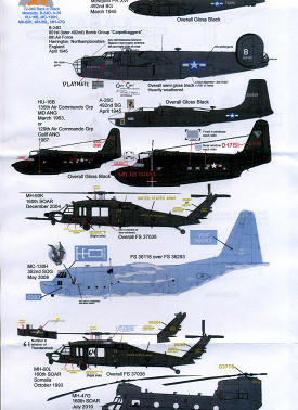 Decals, these being some very dark aircraft in terms of mission and of coloring.