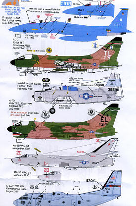 Third aircraft is an NA-1G from the 4407th CCTS at Hurlburt Field in 1971. This aircraft is in shown in FS 16440 Light Gull Grey over white in the standard USN pattern. The tail band is done in ADC Grey FS 16473.