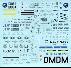 The instruction sheet for this set is the best in the business when it comes to background information and what may be needed to accurately depict the aircraft being modeled. In addition to the actual placement profiles, there are several additional pages of information that include a history of the type, kits and update bits for these schemes, as well as load-out information, and any changes needed to properly model the aircraft in question, assuring you of the most accurate model you can have. A listing of kits and conversion sets is also included.