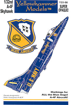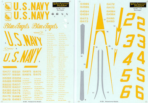 This sheet covers every Blue Angel A-4F from 1974 when they converted from the F-4 until 1986 when they moved to their current ride, the F-18 Hornet. The sheet provides all the numbers, names and serials for every plane flown by the team during that time period. The instructions include a chart to help you out in that area.