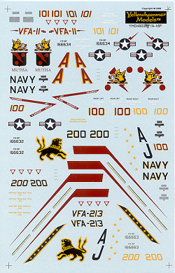First up is the Skipper's plane from VFA-11. I do believe that the area around the cockpit is Insignia Blue. The CAG bird also has the outside of the fins painted in this color. The tail stripes are provided on the sheet, though I have to say the red looks a tad dark when compared to the photo that is provided. Regardless, two nice options.