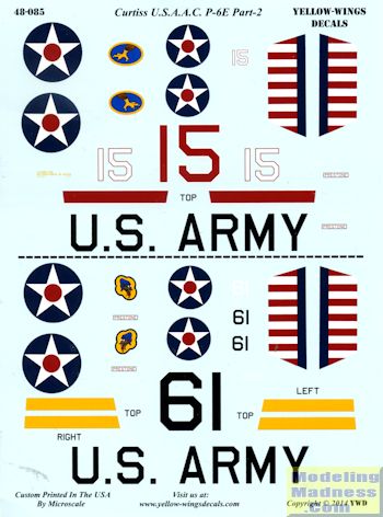 The Microscale-printed decals are superb and include the fuselage stripes as well as the rudder decals. A detailed instruction sheet provides color information, and while it is geared to USN planes, the shades are the same for the Army.