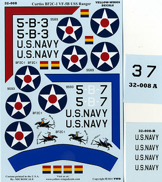 Yellow Wings had created this sheet for the Hasegawa kit, a kit that while elderly (as plastic designs go), is still somewhat available and still makes into a nice kit. The sheet provides markings for two planes from VB-5B.