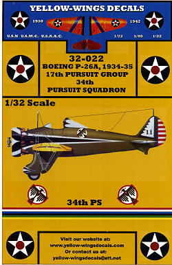 This particular set covers an aircraft from the 34 PS/17 PG from the 1934/35 time period. Olive drab fuselage and orange-yellow wings as was typical for the time. The trim on this one is white and black. The modeler will need to paint some of the white on tail and head rest but not on the leading edge of the spats or on the cowling. Since this was the CO's plane, it has black stripes on the wings and even the wing walk areas are provided as decals.