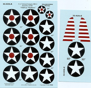 These insignia will allow you to toss the kit markings all together and build two of the options that are on the earlier sheet. This includes the tail stripes for the Coral Sea set as well as the standard 'red dot' insignia of the prewar types and the later versions when that was removed.