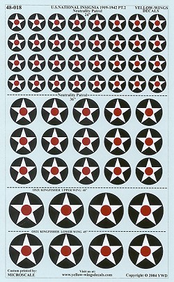 As is common with Yellow Wings decals, the research is absolutely first rate. In addition to a short history of the US Neutrality Patrol, there is pretty exact location information provided to allow you to use these on any of the aircraft that were in service at the time and might have been flying on these patrols. A number of small and large drawings are provided to give you a good place to start with these insignia.