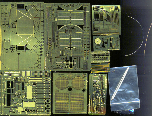 photo etch frets of various sizes along with sections of wire and plastic rod.