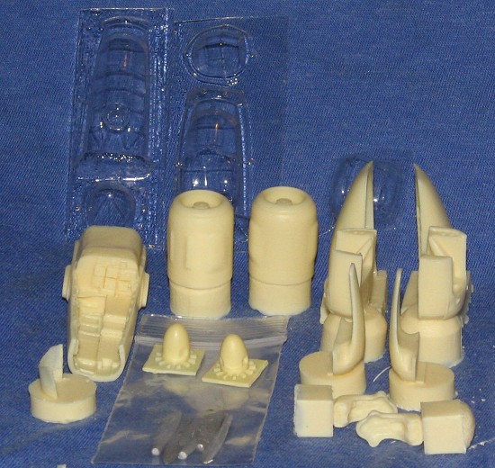 This particular update set is for the fairly new AMtech Ju-88S-1/T-1 kit. Even though the kit is new, the majority of the parts are from AMT/ERTL and so that means that there are some areas that really need improvement. Specifically, the narrowness of the nose area, the poor transparencies, innaccurate BMW 801 engines and the too slender engine nacelles and wheel wells. This is all taken care of with this set which includes a completely new resin nose section that has the detail on the inside that is missing from the AMtech kit. New and accurate engines as well as their superb replacement nacelles/wheel wells will go a long way to making it look more like what it supposed to be. You also get new spinners with fans, metal prop blades and new seats for the guys inside. An excellent set that will surely help your next Ju-88S-1/T-1 effort.