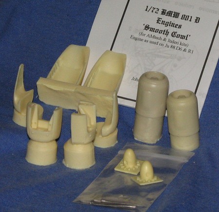 Once again, AIMS provides a set to improve existing Ju-88/188 kits. This set provides a set of BMW 801 D 'smooth cowl' engines  for the AMT, AMtech, or Italeri Ju-88 or Ju-188 aircraft that used these engines. As with all of AIMS' engine replacement sets, this one includes complete nacelles. There are also replacement metal prop blades. In addition, you get a complete set of instructions to  help you with this update set.