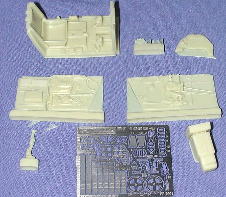 Guess one really cannot have enough stuff for the fabulous Bf-109 and here is an additional bit for those who like their 109s big. This set from Aires is for the Bf-109G-6, but could just as well be used for the G-14 kit as well as the cockpits are essentially the same. While many may think of this set as gilding the lily, others find such stuff as essential for any model.